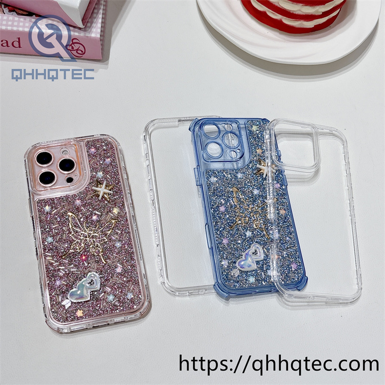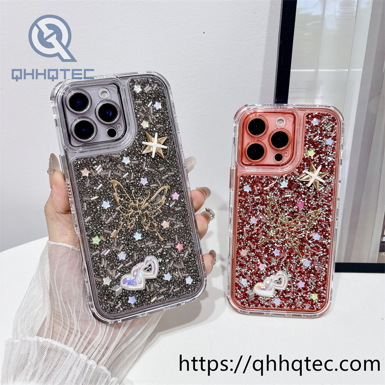subtitle: 360 protect 3 in 1 phone case DIY accessory decoration butterfly heart sequins star bead segments