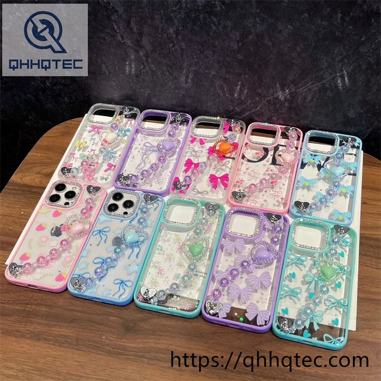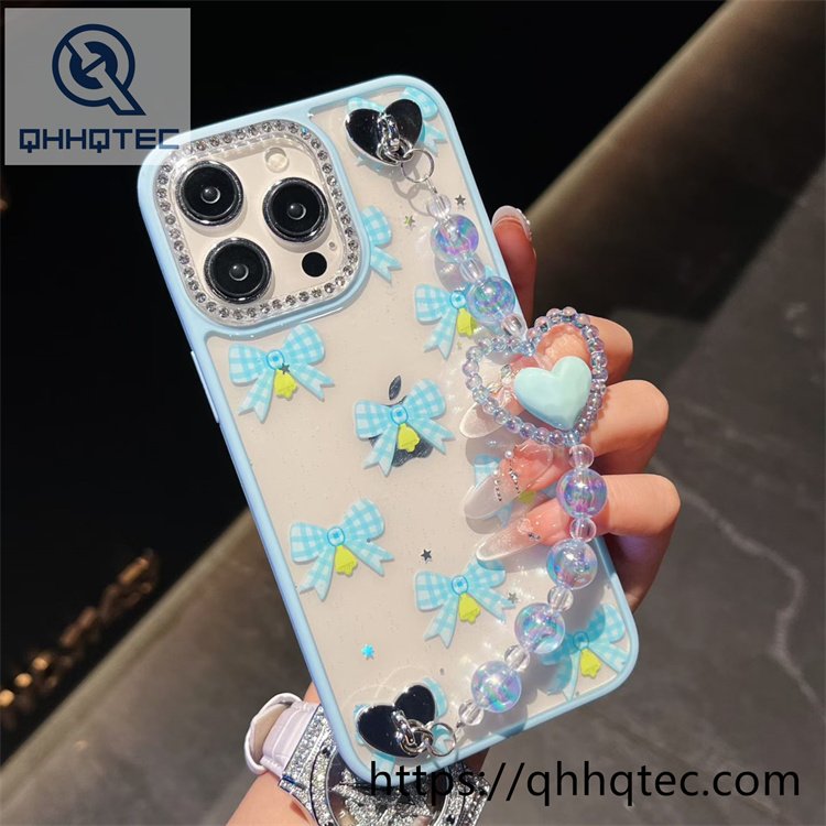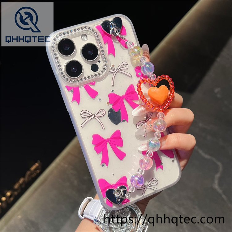 subtitle: Cartoon colorful bow tie patterns phone case clear design with crystal pendant diamonds camera