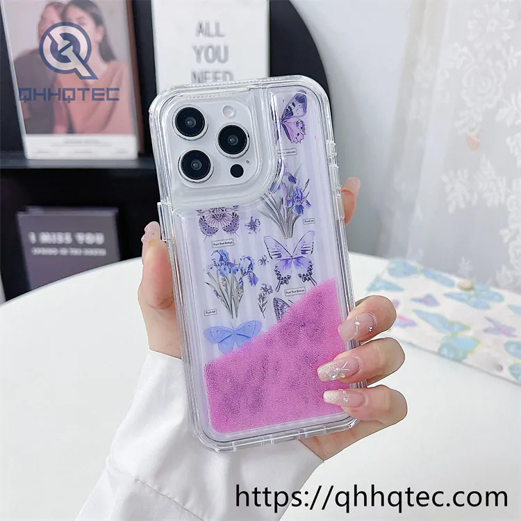 subtitle: Liquid flowing bling style new fashion butterfly painting colorful quicksand 2 in 1 protect cover