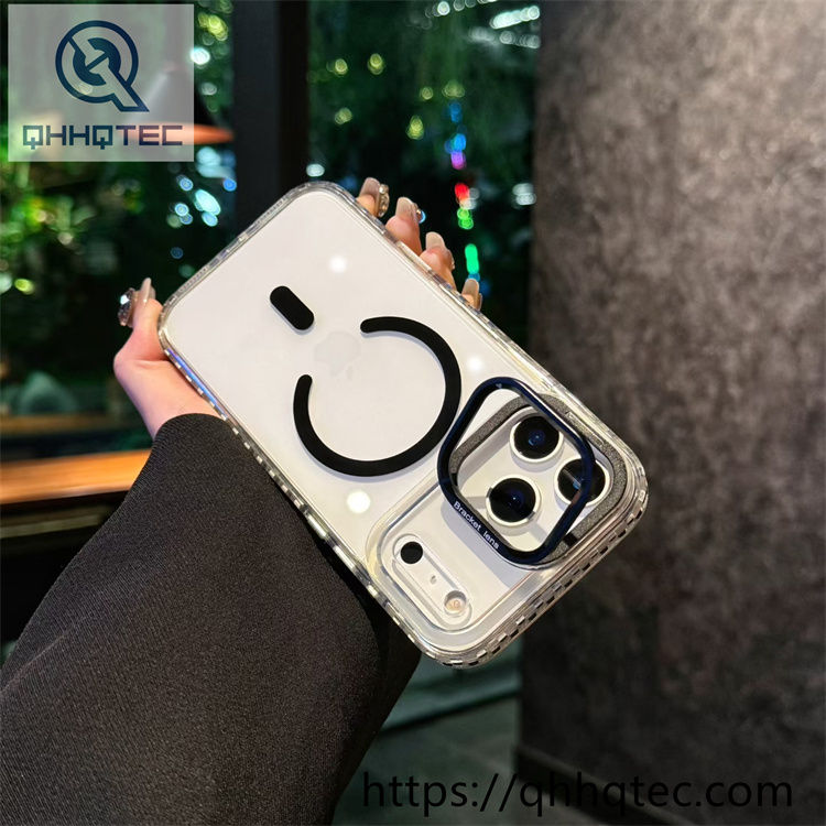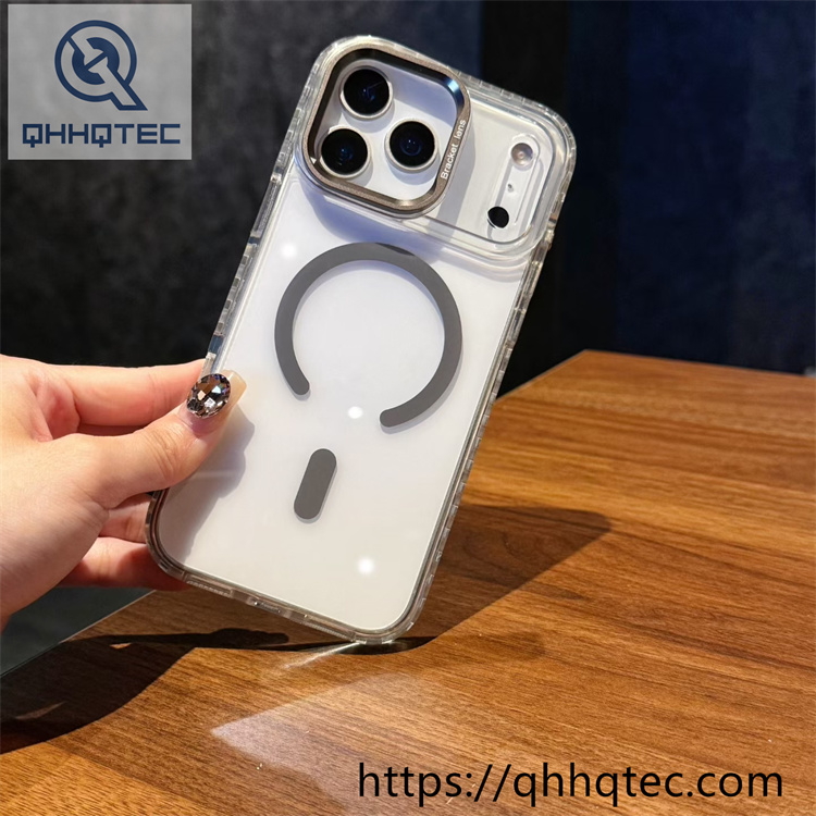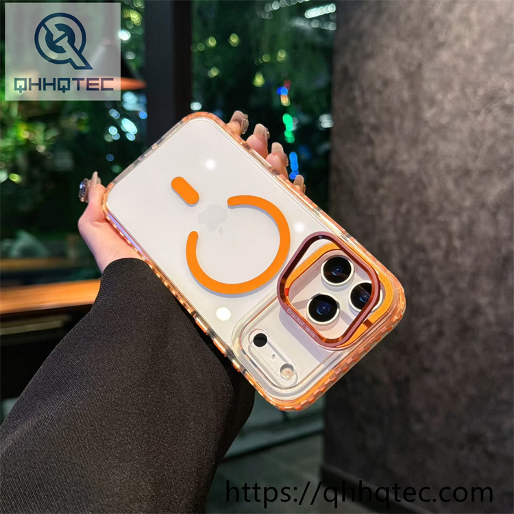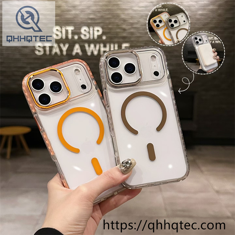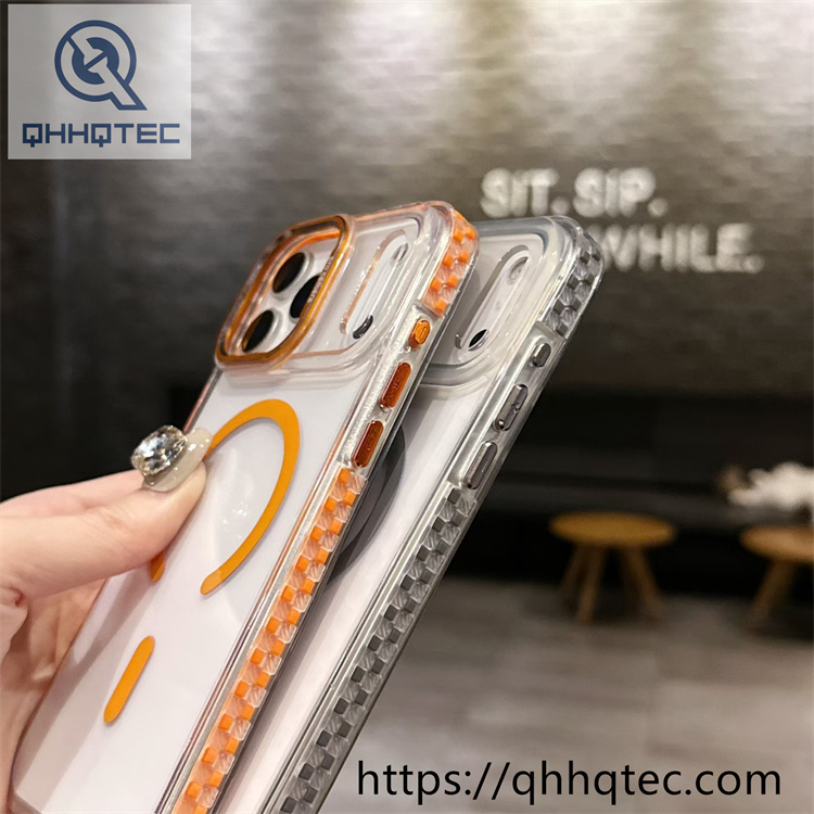 subtitle: Two-tone checkered border decoration high translucent phone case magsafe design color len bracket