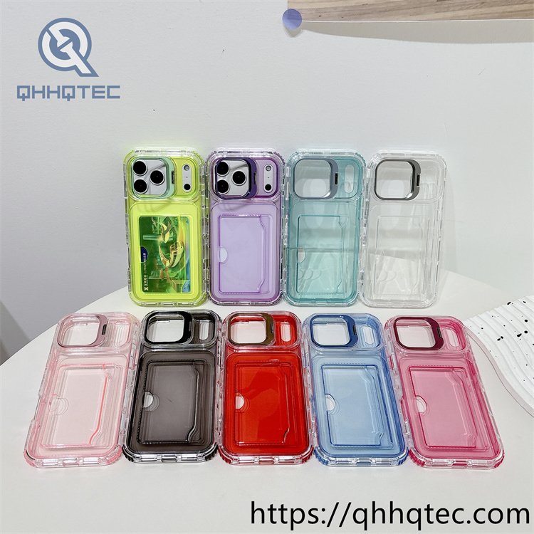 subtitle: Transparent pure colors phone case with len metal bracket 3 in 1 card bag design iphone 17 serie