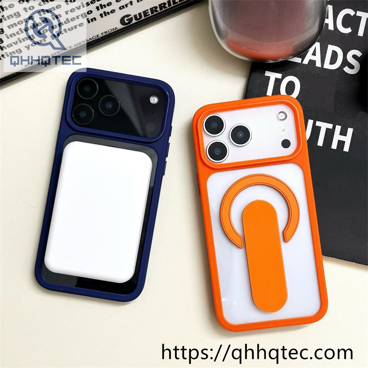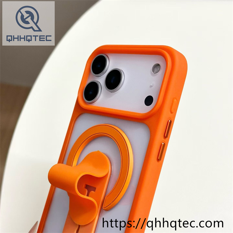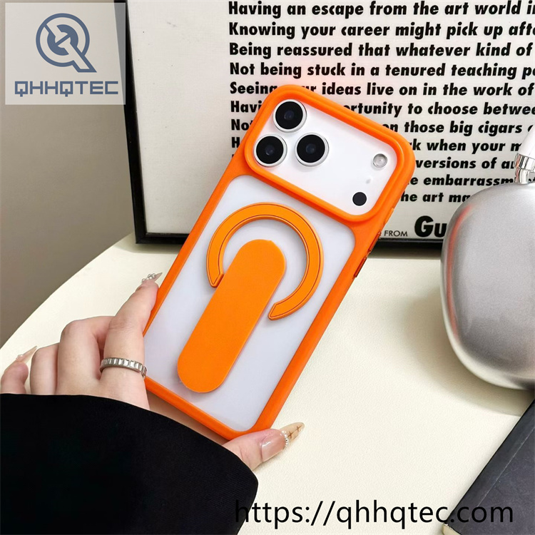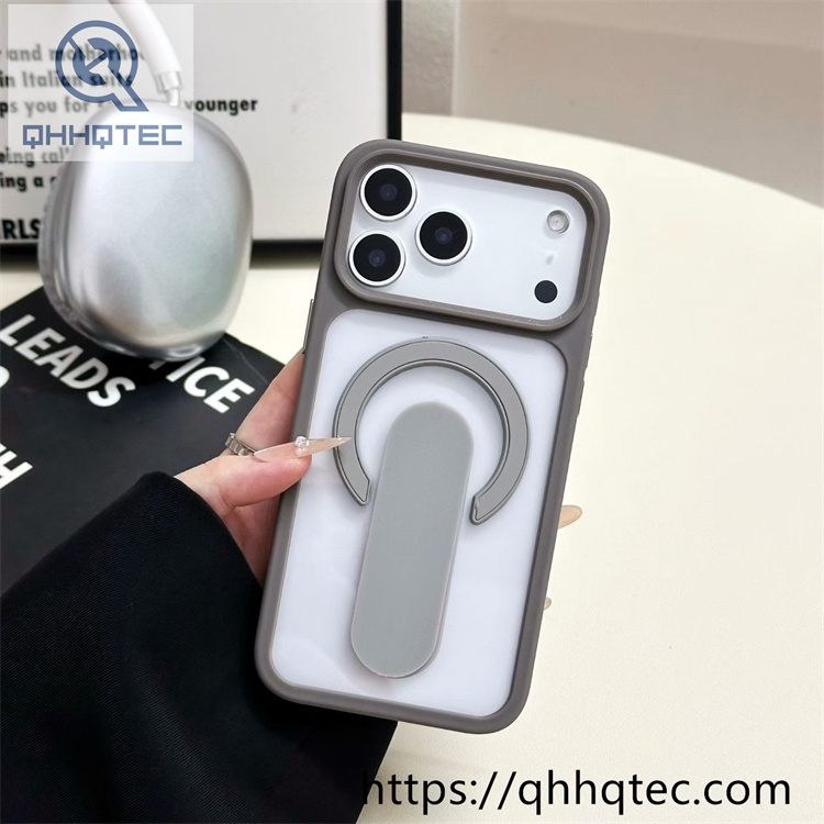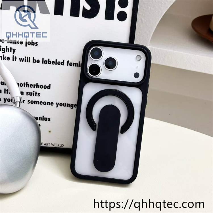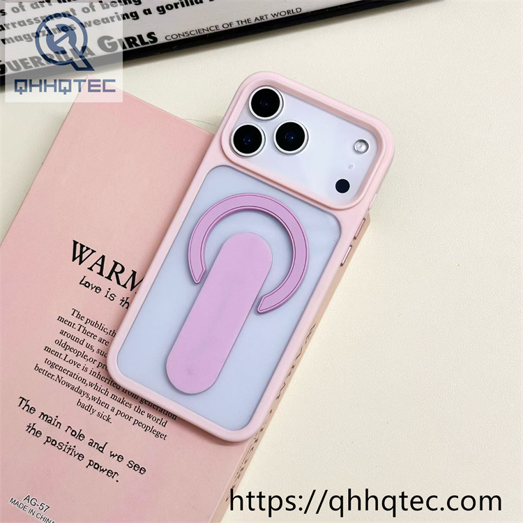 subtitle: Half-circle magnetic design transparent phone color case adjustable foldable stand fit metal buttons