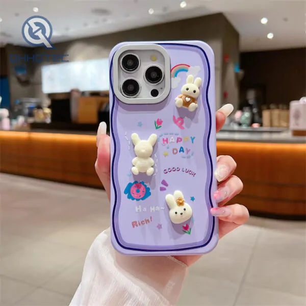 subtitle: Wave edge design with dolls decoration cute 3 in 1 phone case for all mobile phone