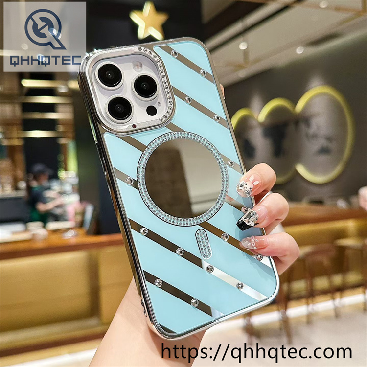 subtitle: Colored back panel diagonal stripe design makeup mirror magnetic charging diamonds ornament