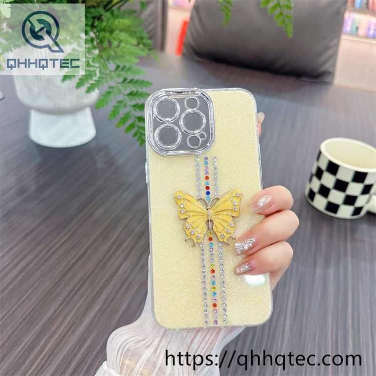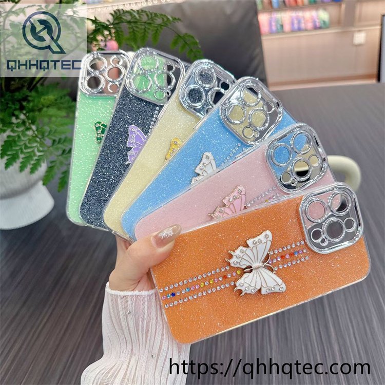 subtitle: Plating camera frame design phone case colored back glitter full diamonds line butterfly garnish