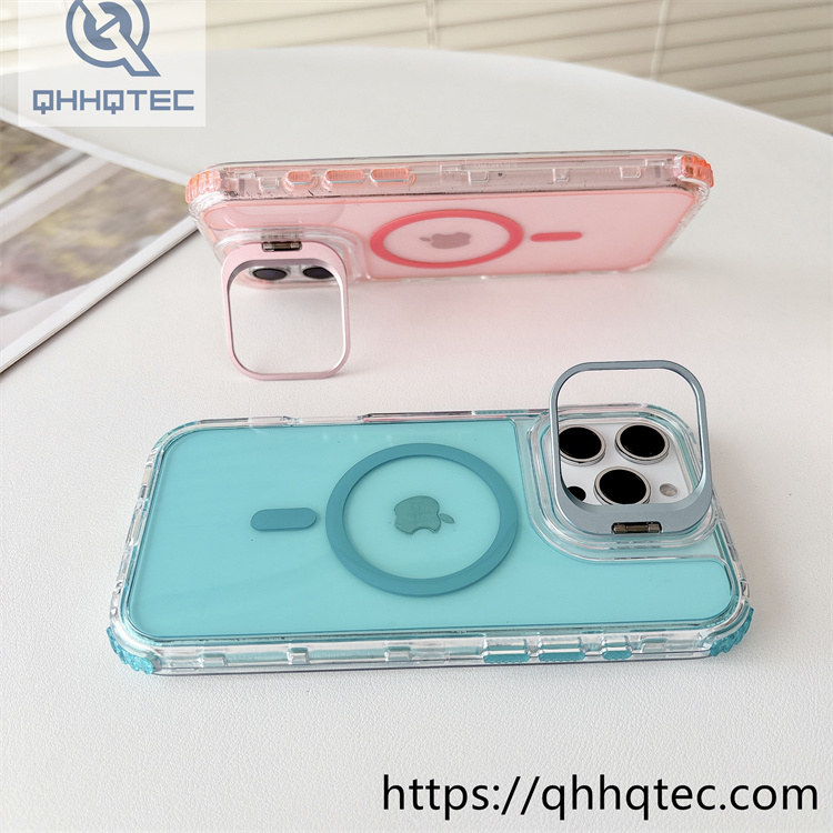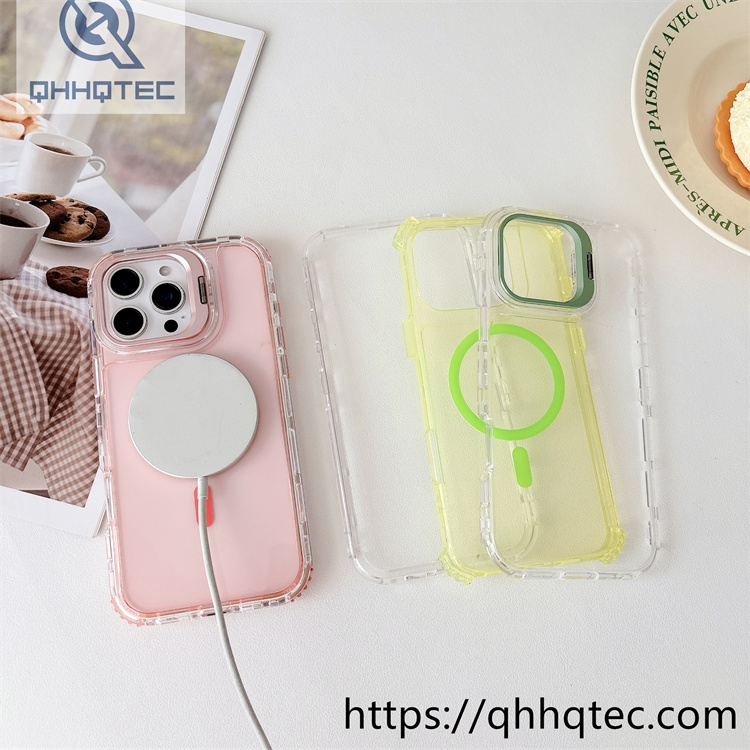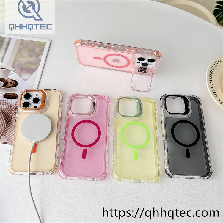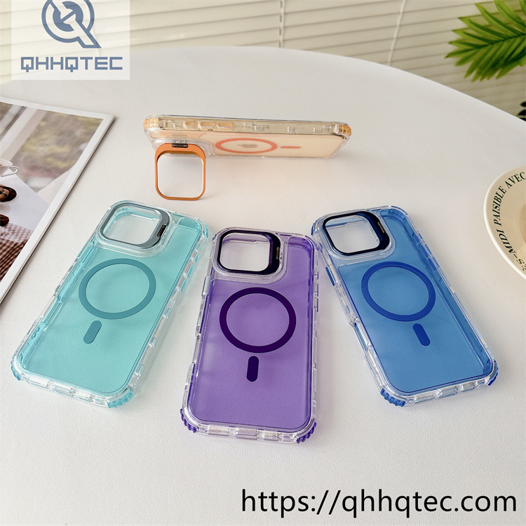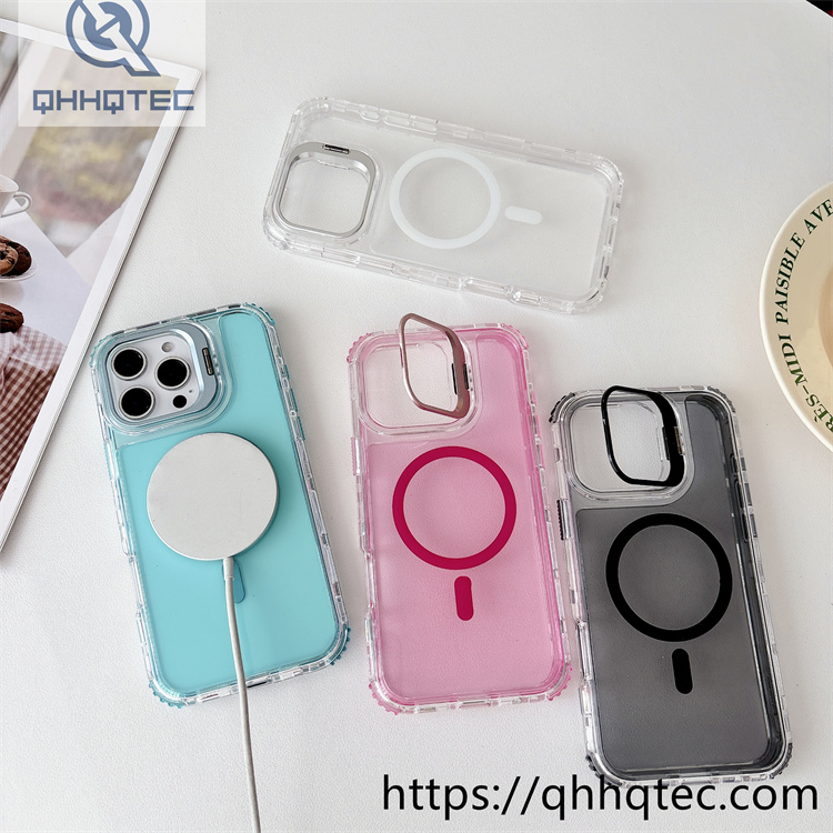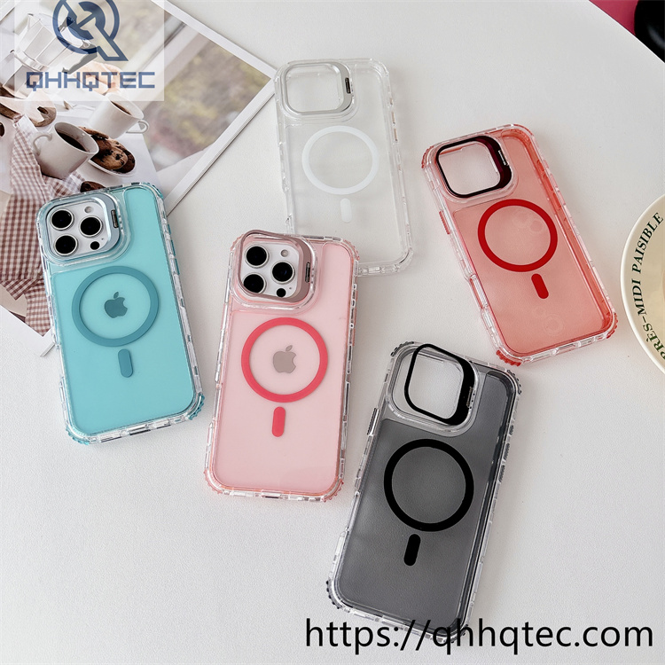 subtitle: Colors dyed back clear transparent frame phone 3 in 1 case magnetic design metal camera bracket