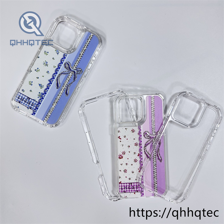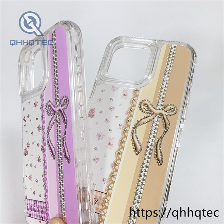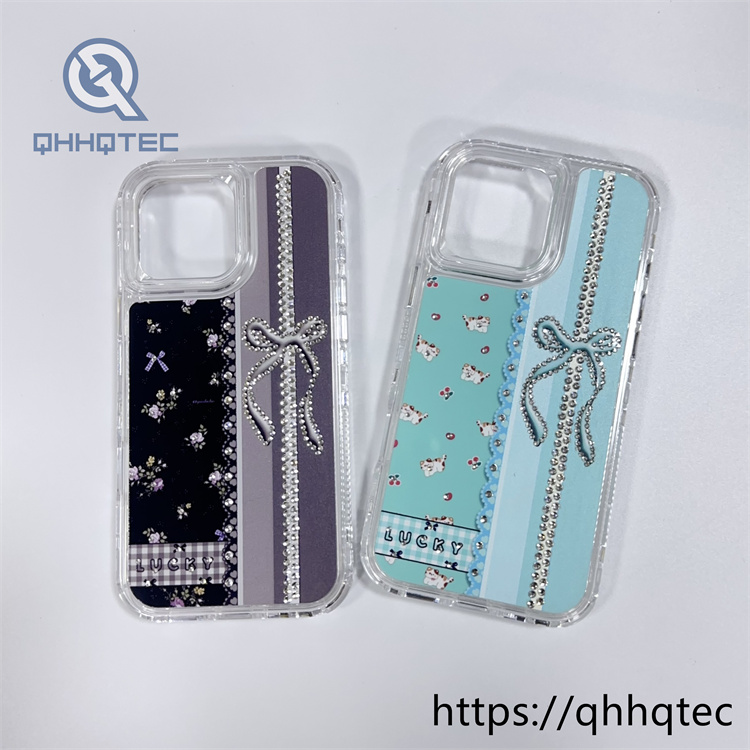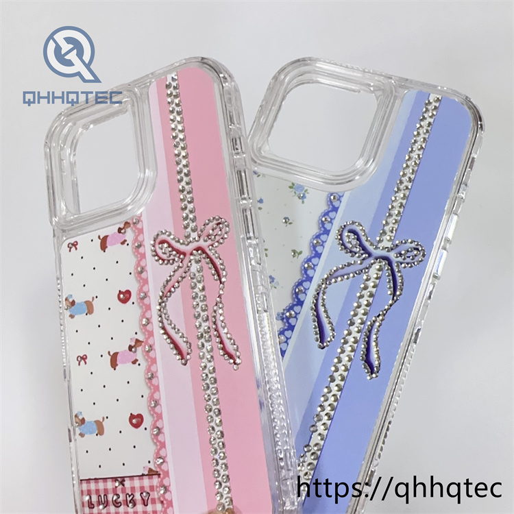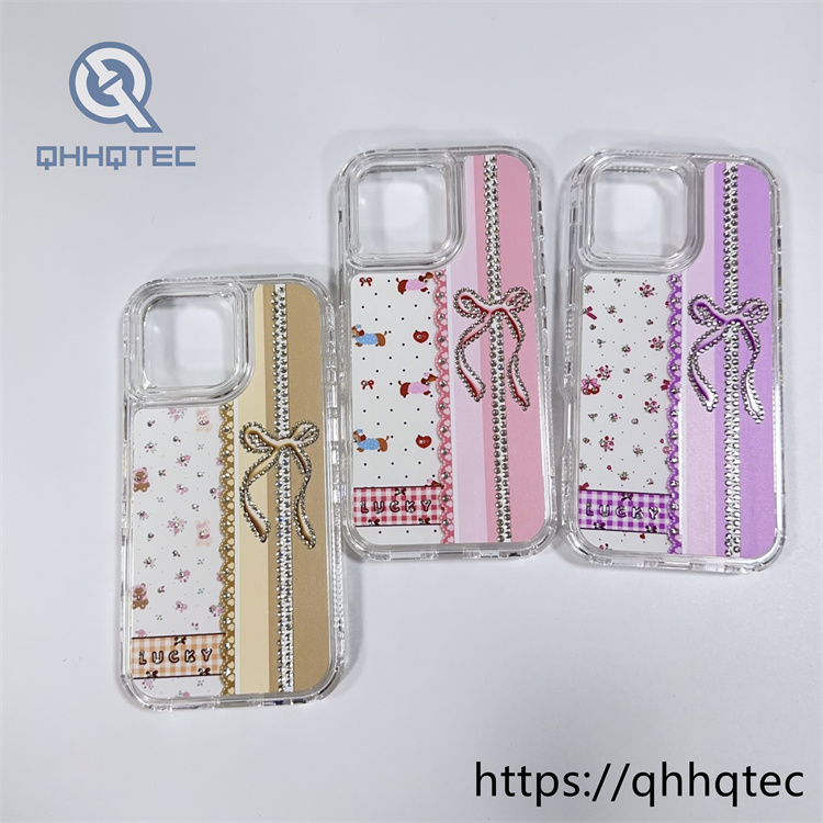 subtitle: Floral pattern lace design bow with diamond decoration 3 in 1 lucky phone case colorful shiny multi-layer protect