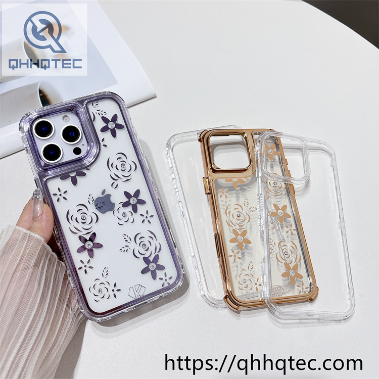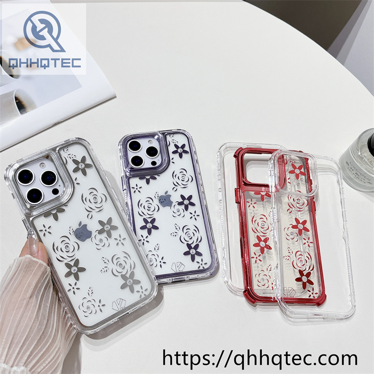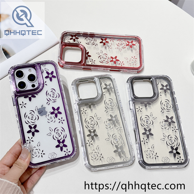 Key words for our products: 3 in 1 case, electroplated design, flower print