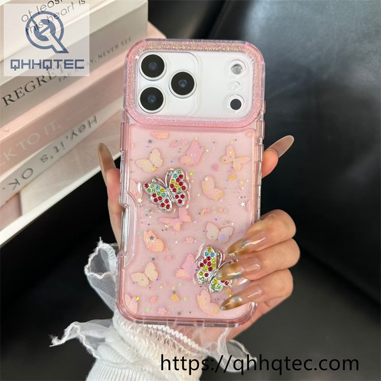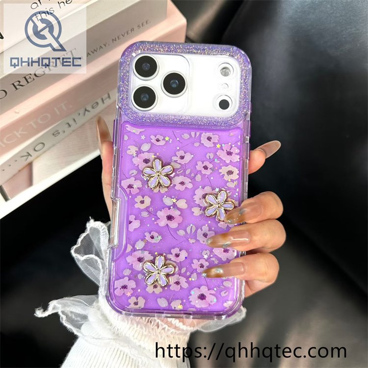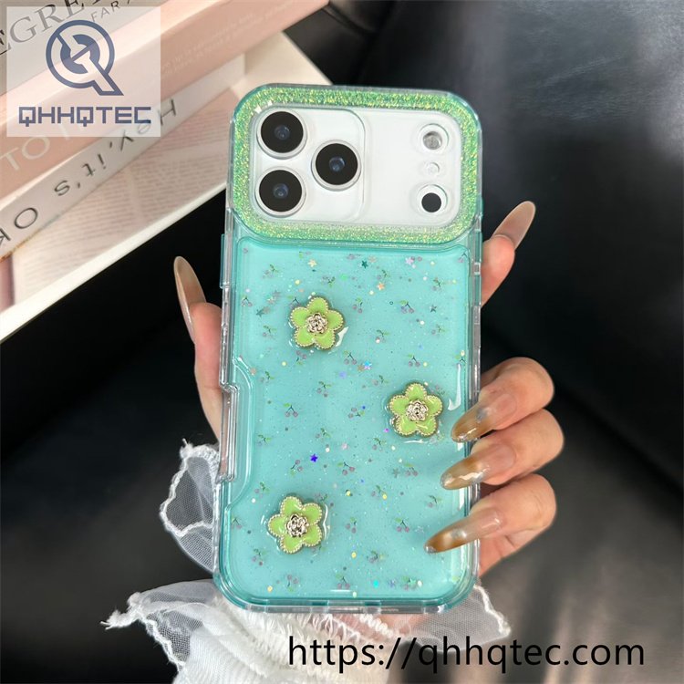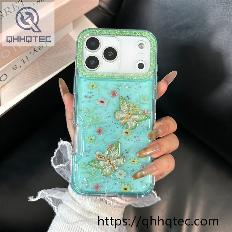 subtitle: Fresh color style flowers butterfly phone 3 in 1 case dripping design glitter camera frame full protect