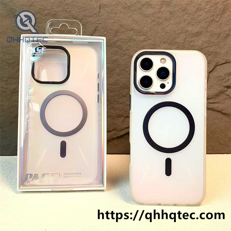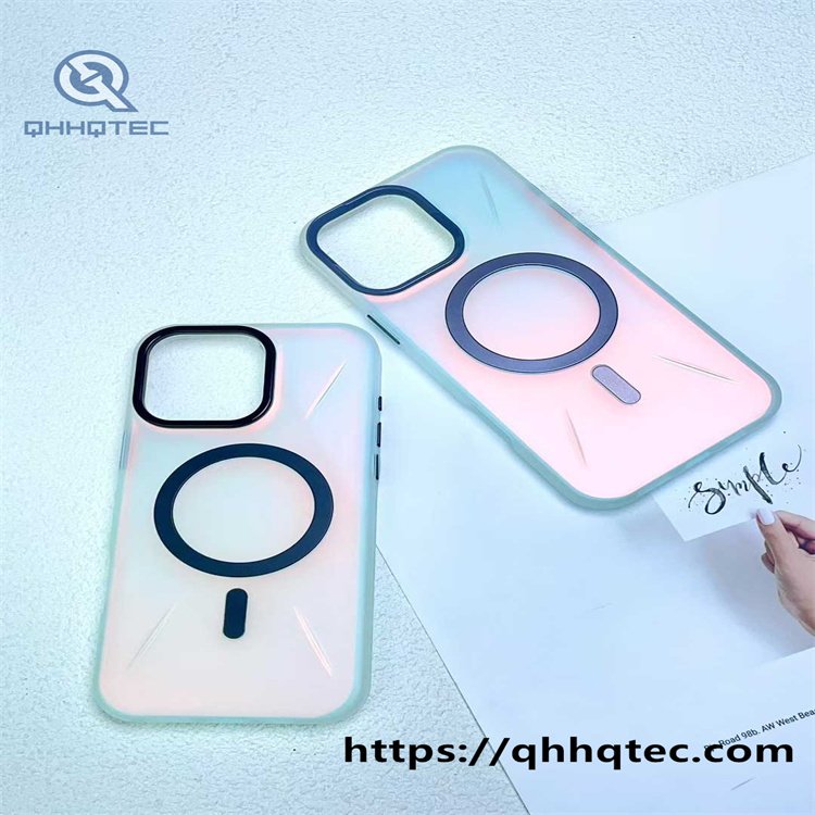 subtitle: Fluorescent white change matte phone case colored magnetic charging ring line design len raised