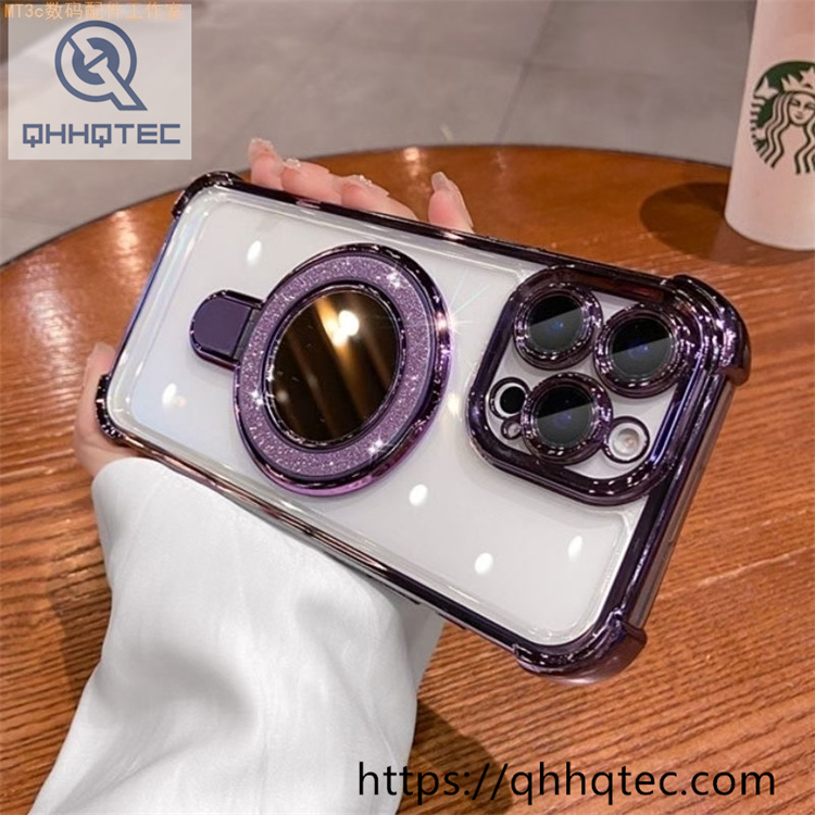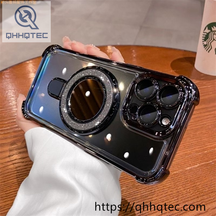 subtitle: Transparent case glitter magnetic ring shiny holder anti-fall thickened corner anti-yellow material