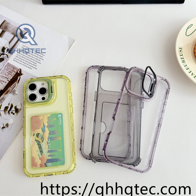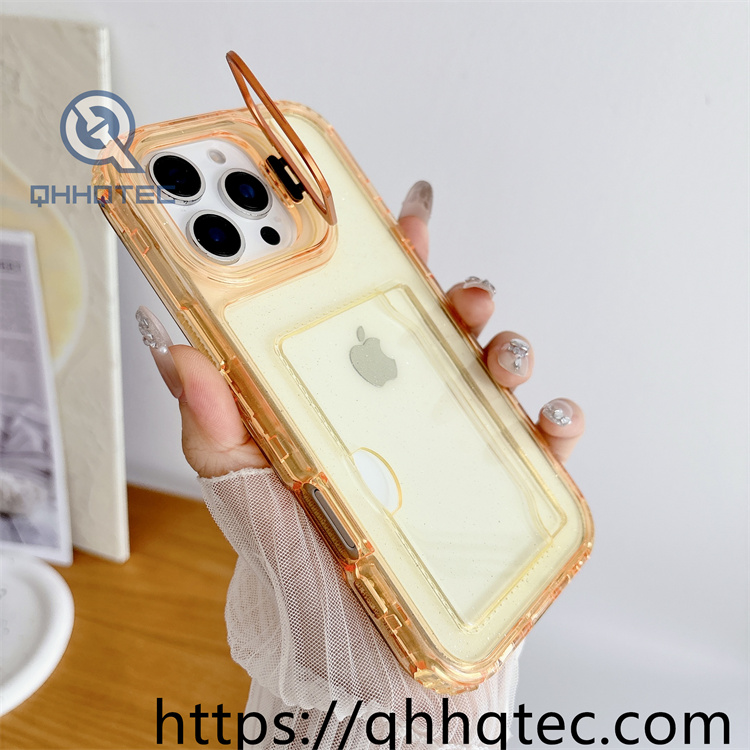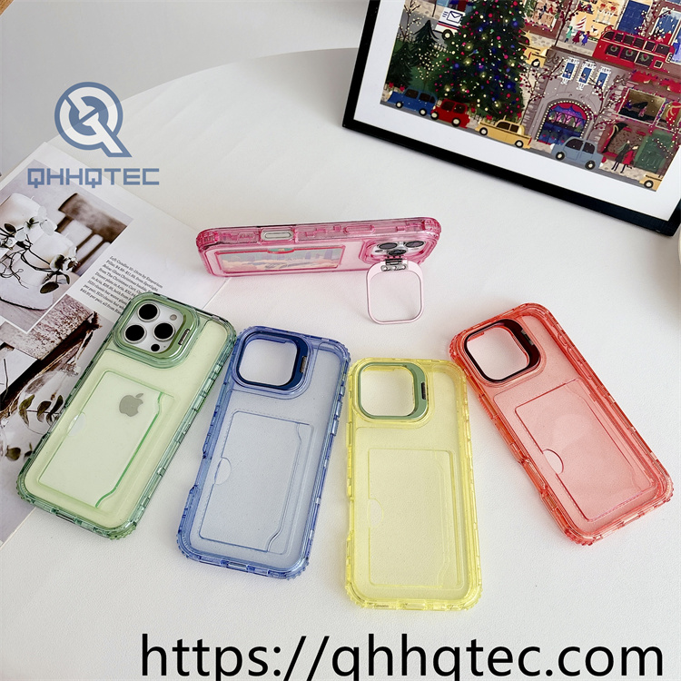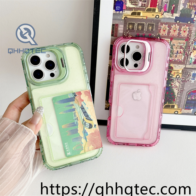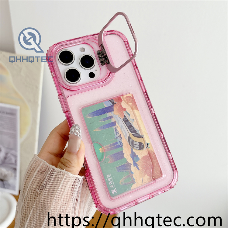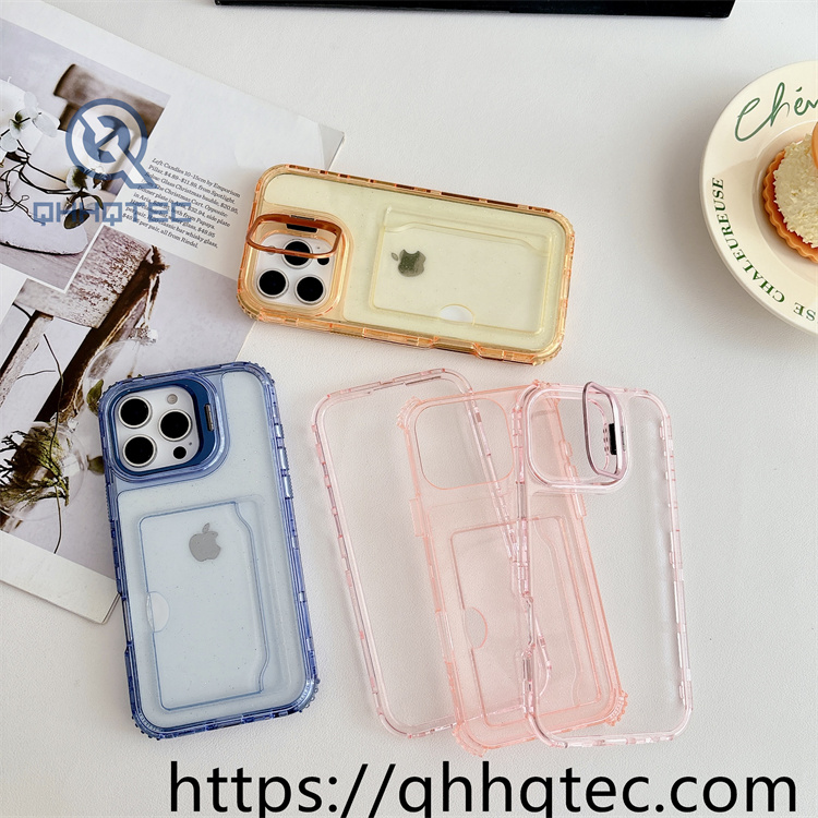 subtitle: Colored glitter phone 3 in 1 clear case card bag portable design metal camera bracket anti-fail corner
