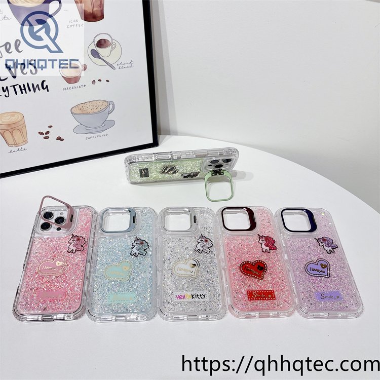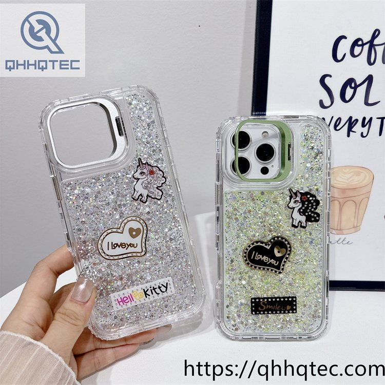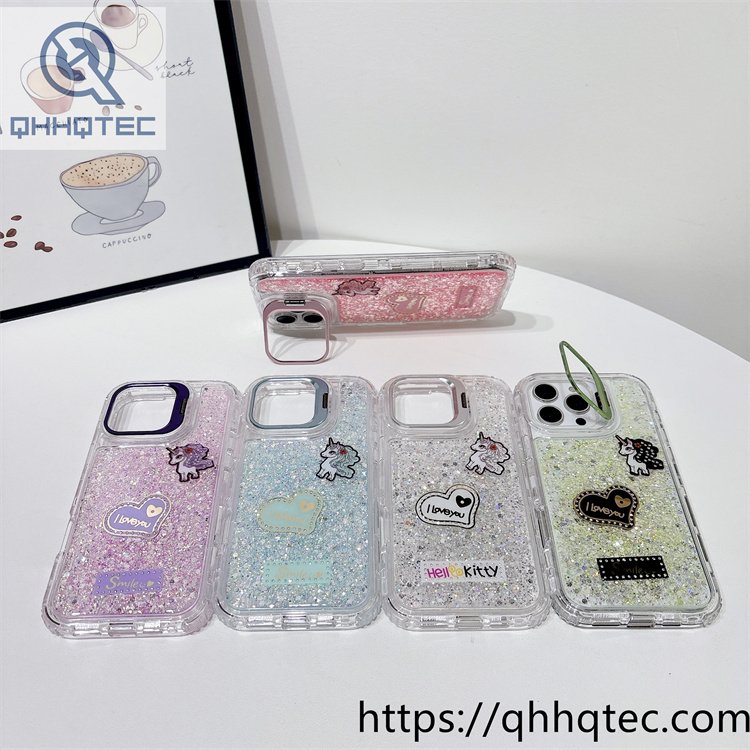subtitle: Character cards design full glitter phone 3 in 1 case heart unicon decoration diamonds len bracket