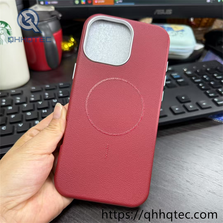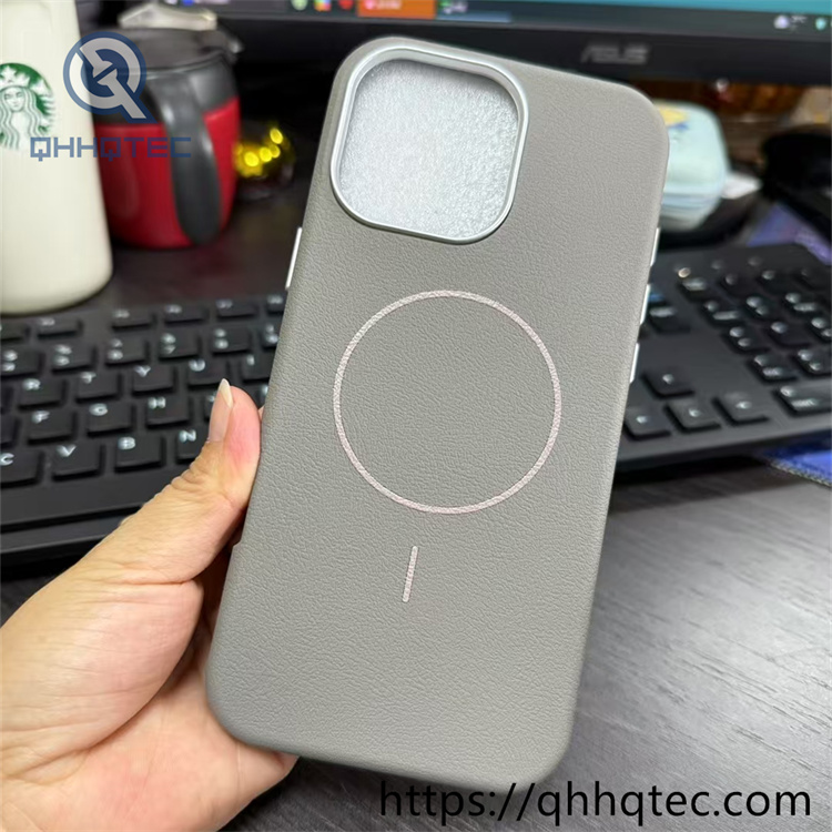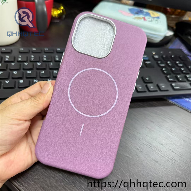 subtitle: Solid color 2MM leather grain fine circle skin texture magsafe design magnetic charging phone case