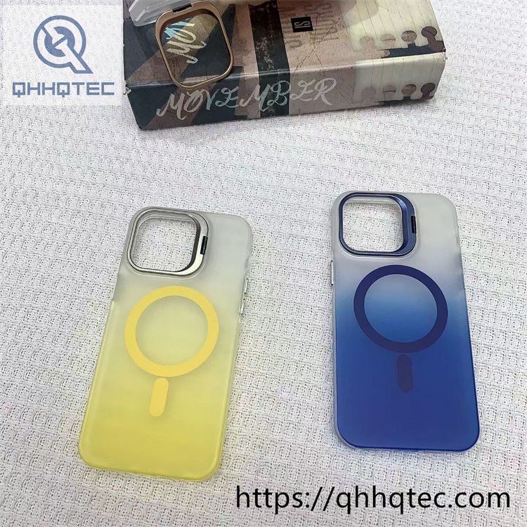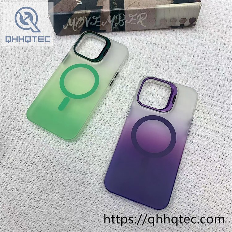 subtitle: Colors gradient matte design magnetic charging phone case metal len bracket buttons full protect