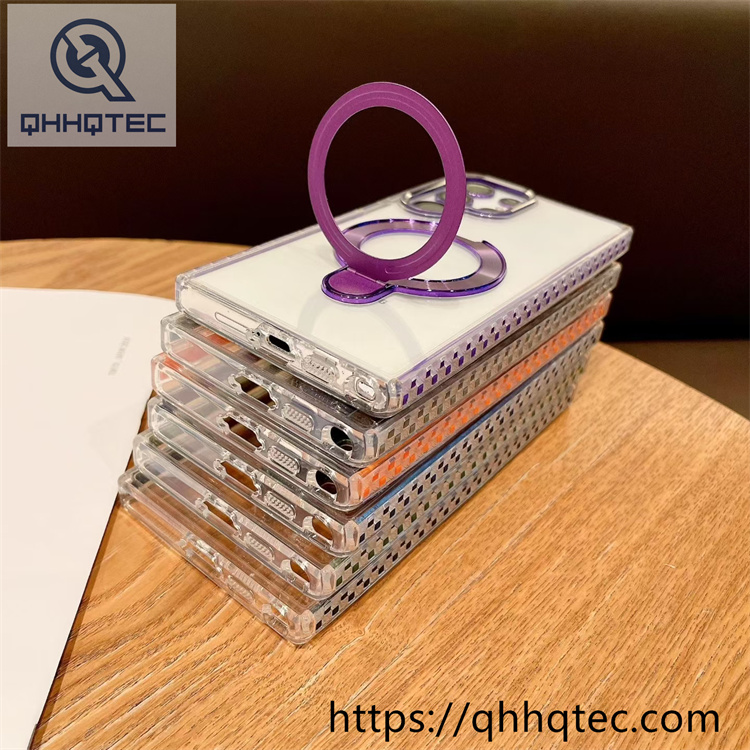 subtitle: Square shape transparent phone case grid border design matel camera frame magnetic ring bracket