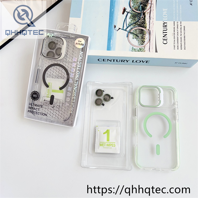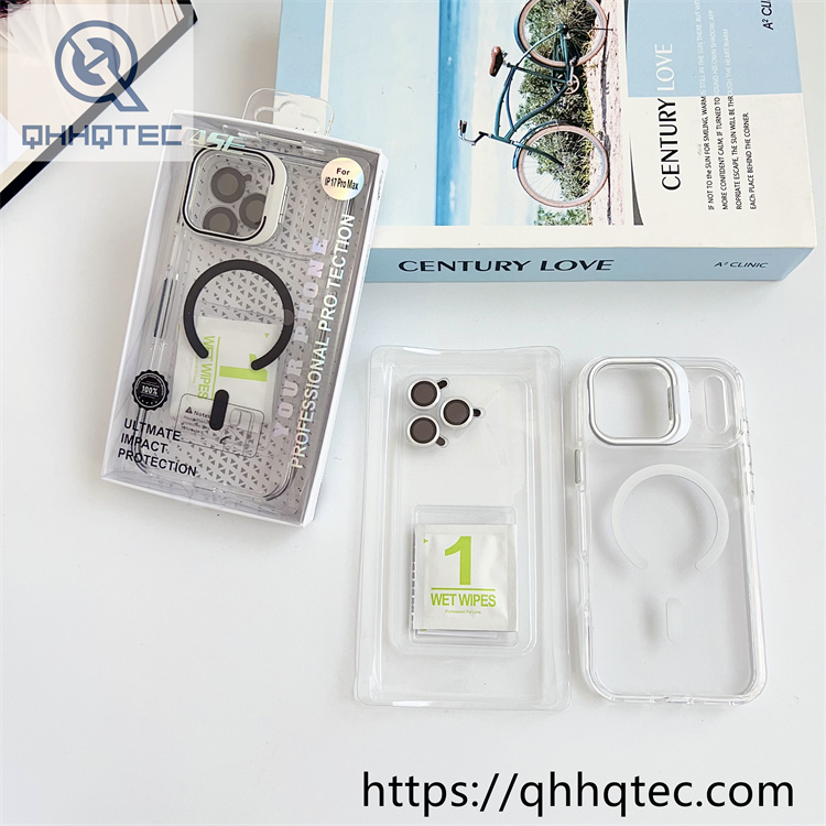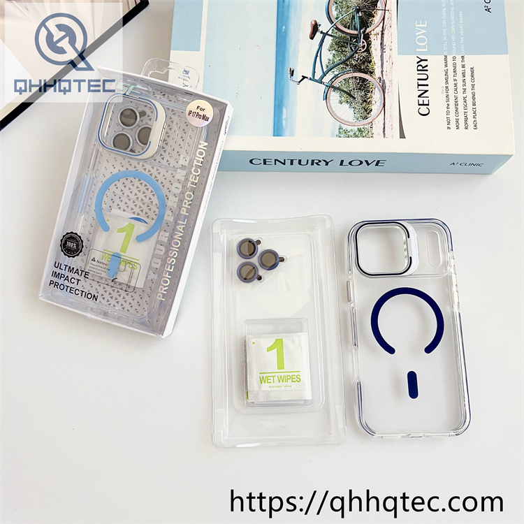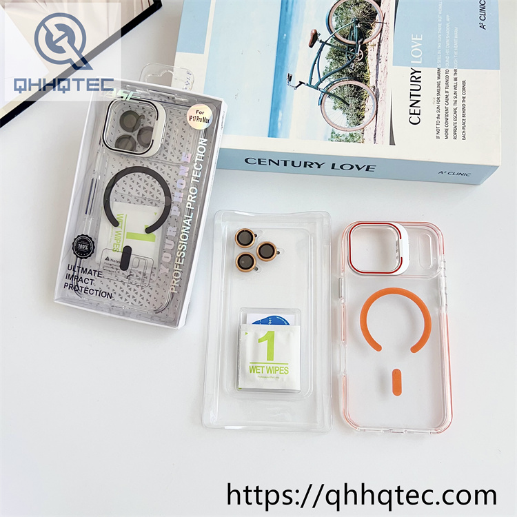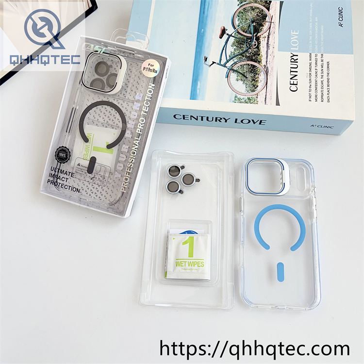 subtitle: Transparent magsafe phone case back panel design package box len protect film camera package