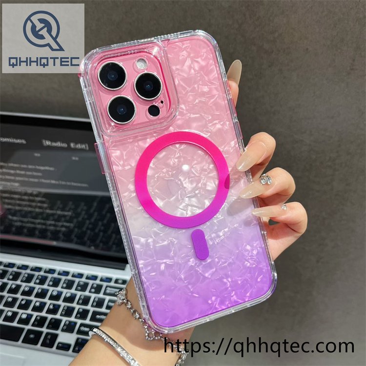 subtitle: Icy clear feeling three colors gradient design laser texture magsafe ring color blocking phone case