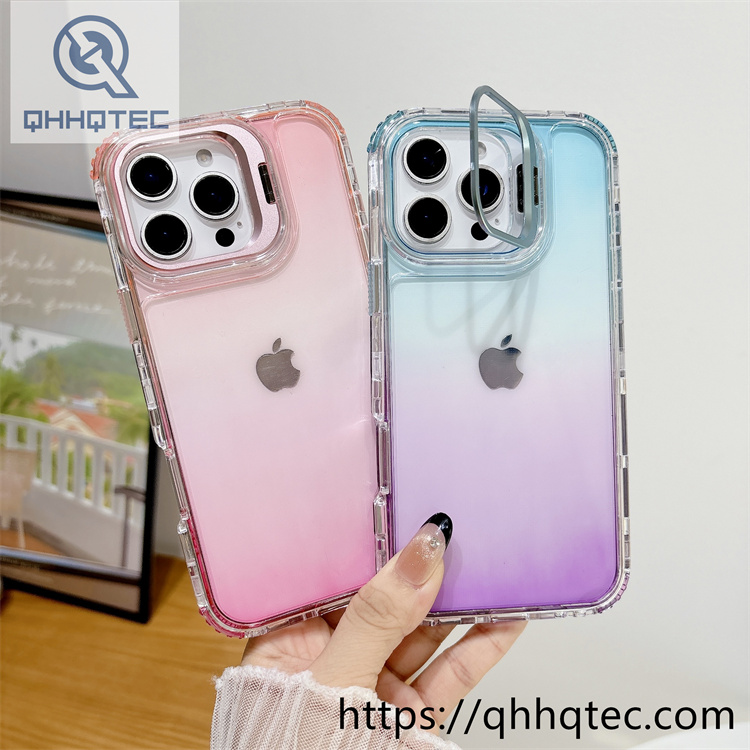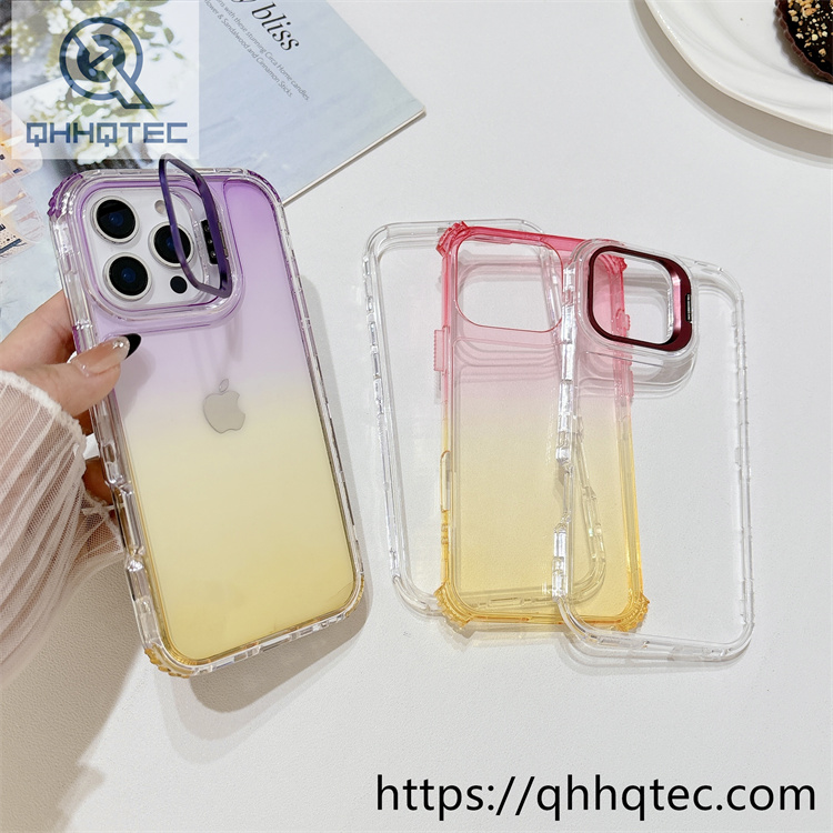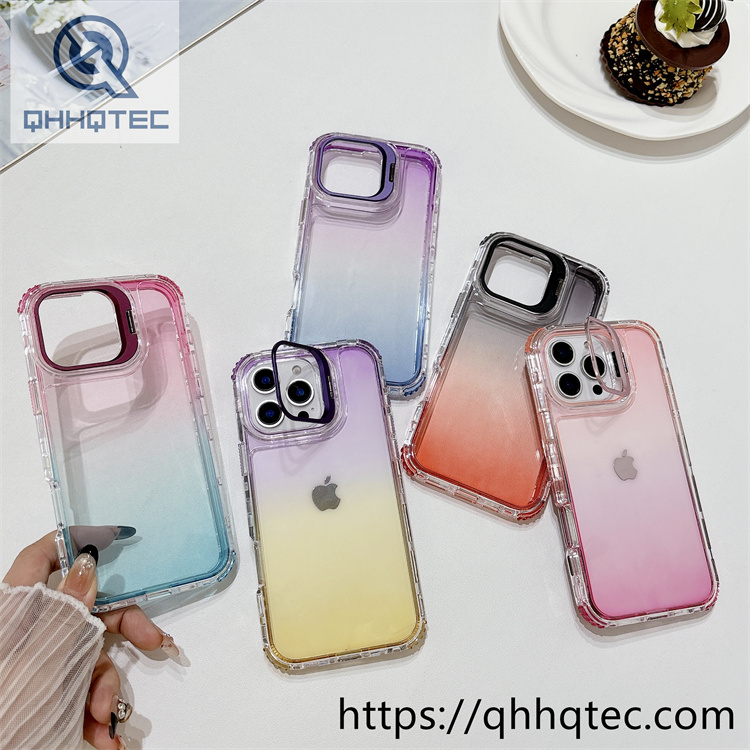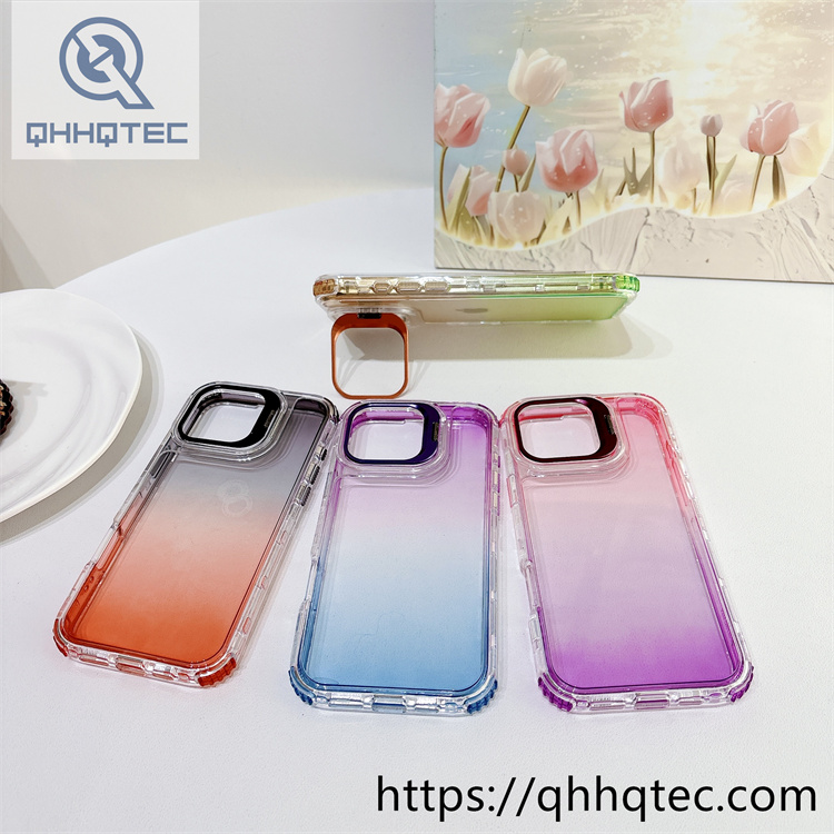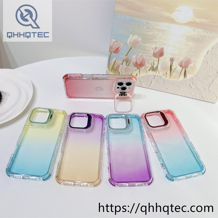 subtitle: Double color blocking gradient clear design phone 3 in 1 case metal camera bracket anti-fall corner