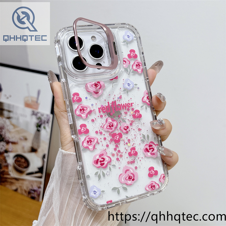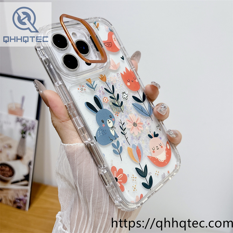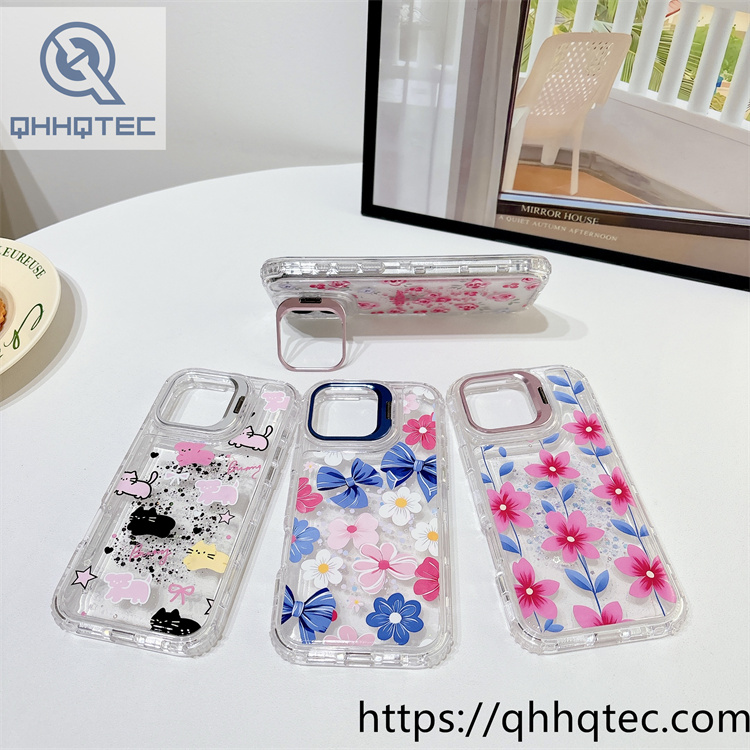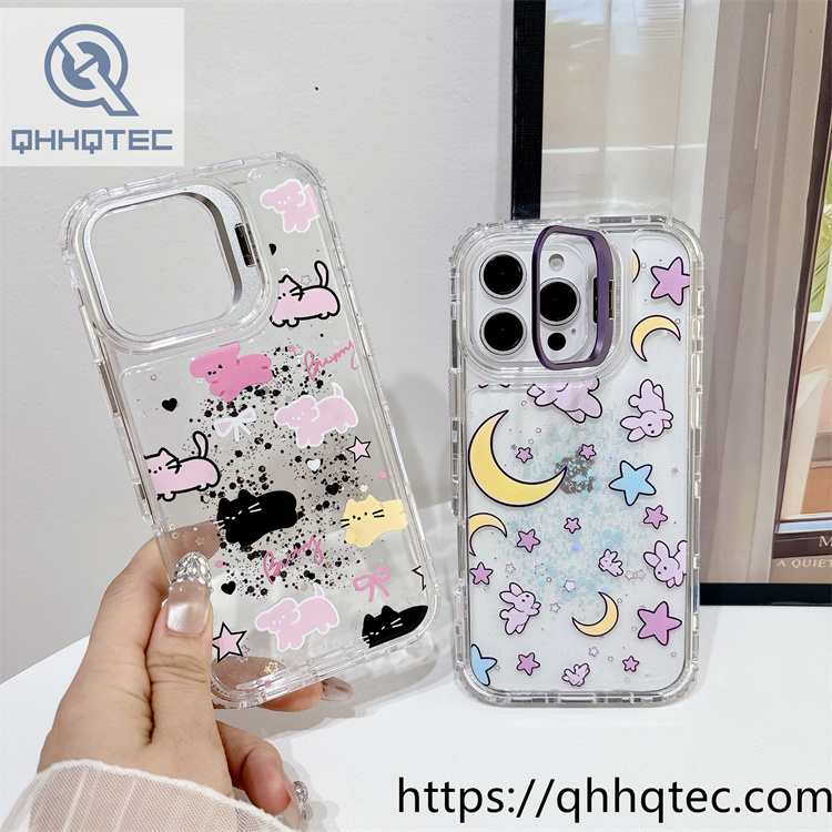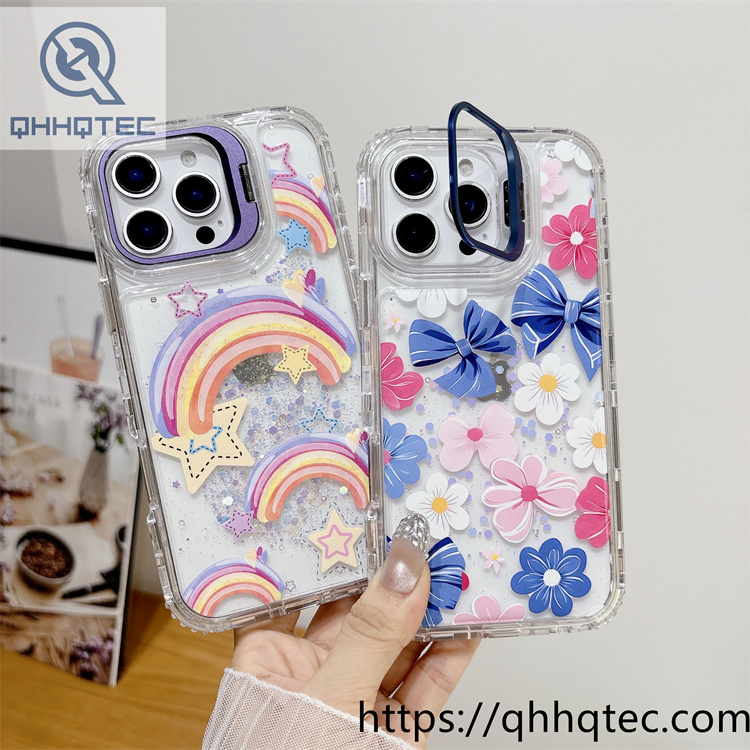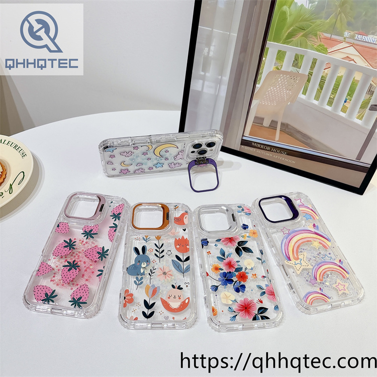 subtitle: Transparent glitter sequins base colorful paintings outside phone 3 in 1 case metal camera bracket